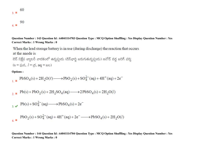 When the lead storage battery is in use (during discharge) the reaction that occurs at the anode is