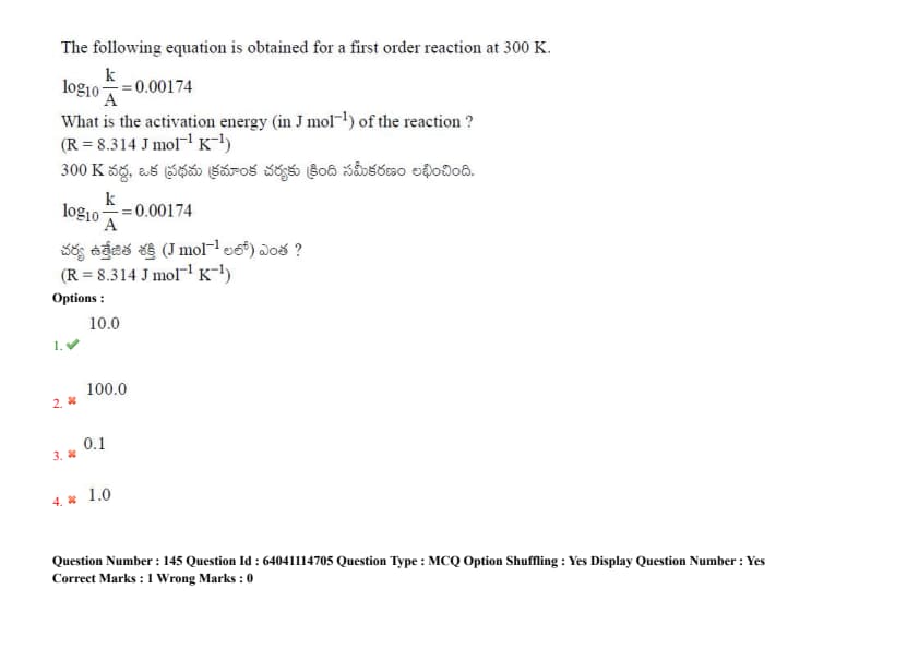 What is the activation energy (in J mol\(^{-1}\)) of the reaction ?