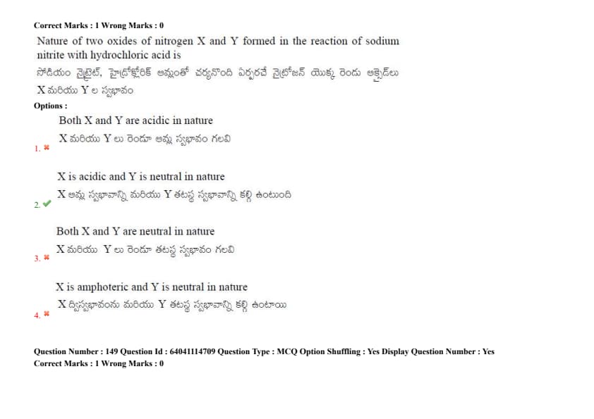 Nature of two oxides of nitrogen X and Y formed in the reaction of sodium nitrite with hydrochloric acid is