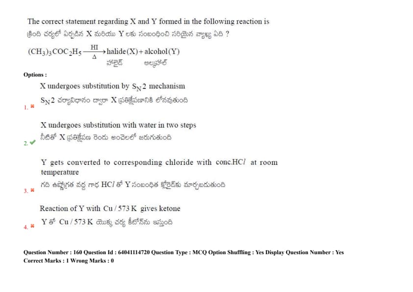 \((\operatorname{CH}_3)_3\operatorname{COC}_2\operatorname{H}_5 \xrightarrow{HI, \Delta}\) halide(X) + alcohol(Y)