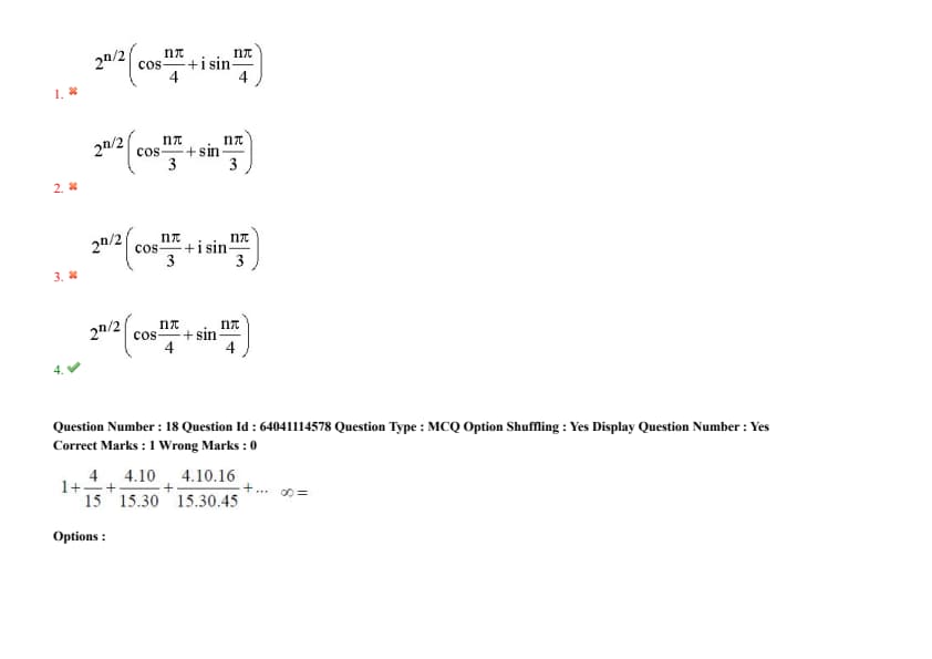 \( 1 + \frac{4}{15} + \frac{4 \cdot 10}{15 \cdot 30} + \frac{4 \cdot 10 \cdot 16}{15 \cdot 30 \cdot 45} + \cdots \infty \)