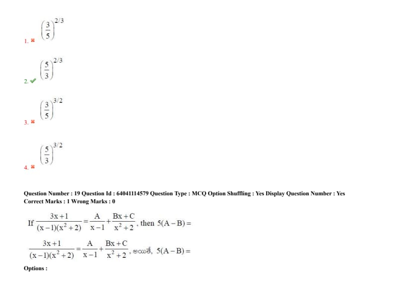 If \( \frac{3x+1}{(x-1)(x^2+2)} = \frac{A}{x-1} + \frac{Bx+C}{x^2+2} \), then \( 5(A-B) = \)
