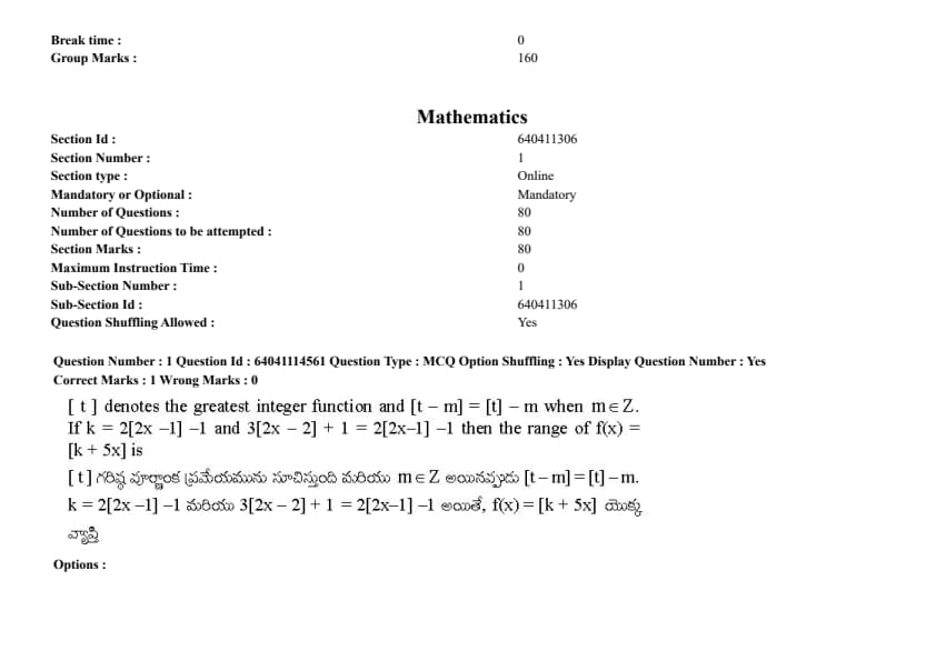 The AP EAPCET 2025 Question paper consists of 160 MCQs, including 80 from mathematics, 40 from both physics and chemistry, with 1 mark for each correct answer and no negative marking.