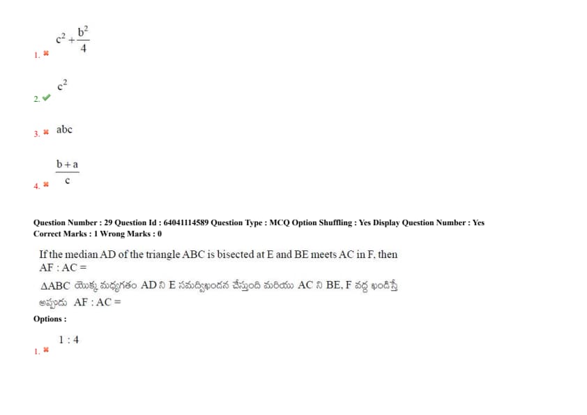 If the median AD of the triangle ABC is bisected at E and BE meets AC in F, then AF : AC =