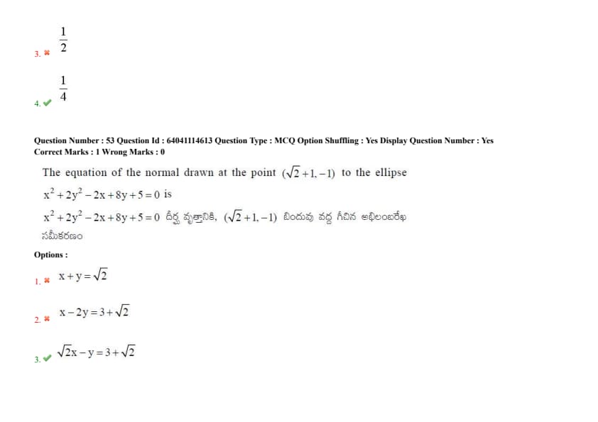 The equation of the normal drawn at the point \((\sqrt{2}+1, -1)\) to the ellipse \(x^2 + 2y^2 - 2x + 8y + 5 = 0\) is