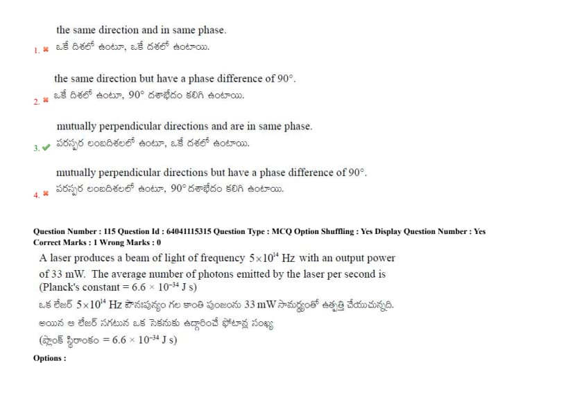 A laser produces a beam of light of frequency \(5 \times 10^{14}\) Hz with an output power of 33 mW. The average number of photons emitted by the laser per second is (Planck's constant = \(6.6 \times 10^{-34}\) Js)