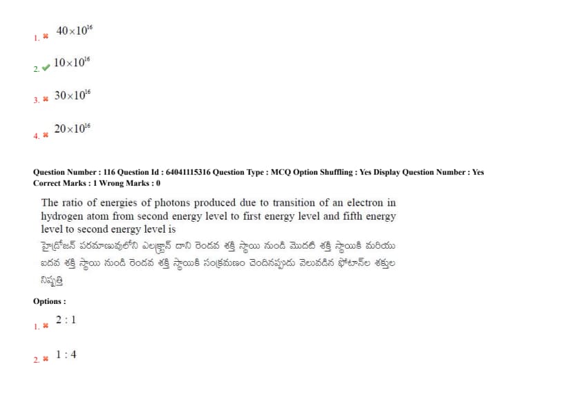 The ratio of energies of photons produced due to transition of an electron in hydrogen atom from second energy level to first energy level and fifth energy level to second energy level is