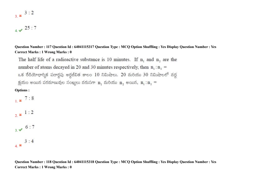 The half life of a radioactive substance is 10 minutes. If \(n_1\) and \(n_2\) are the number of atoms decayed in 20 and 30 minutes respectively, then \(n_1 : n_2 = \)