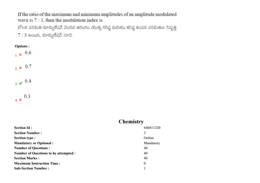If the ratio of the maximum and minimum amplitudes of an amplitude modulated wave is 7:3, then the modulation index is
