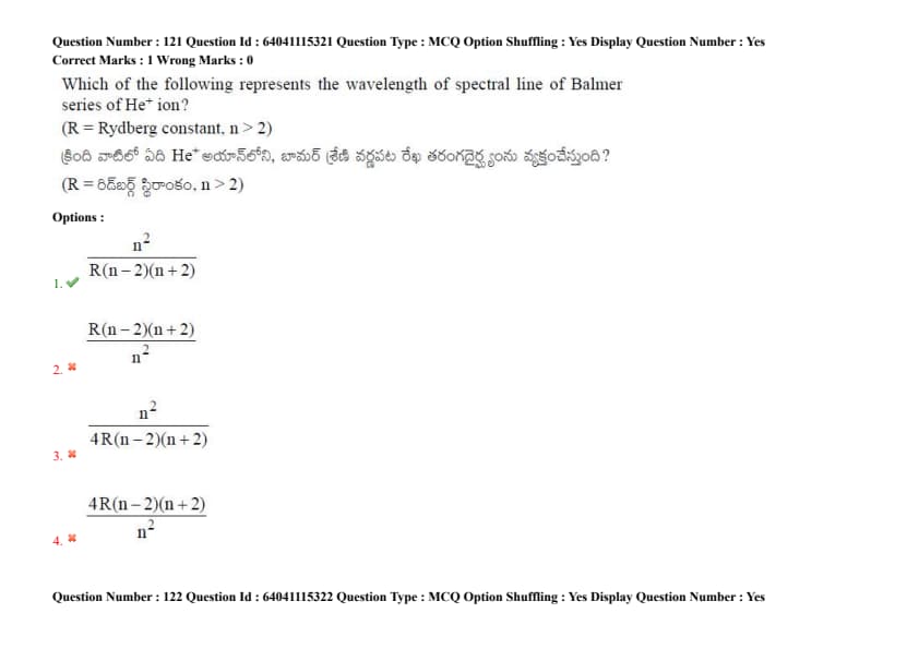 Which of the following represents the wavelength of spectral line of Balmer series of He\(^+\) ion? (R = Rydberg constant, n \(>\) 2)
