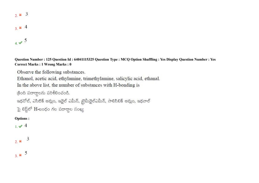 Observe the following substances. Ethanol, acetic acid, ethylamine, trimethylamine, salicylic acid, ethanal. In the above list, the number of substances with H-bonding is