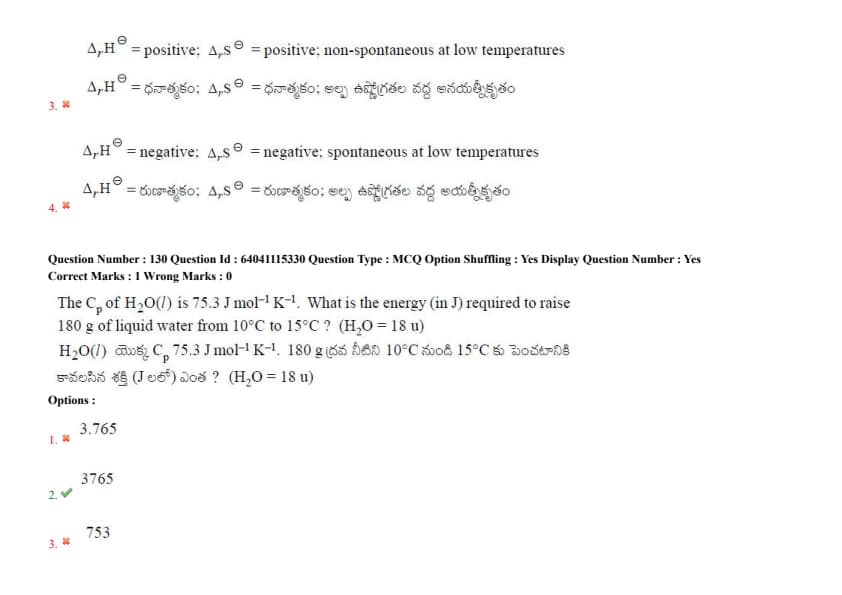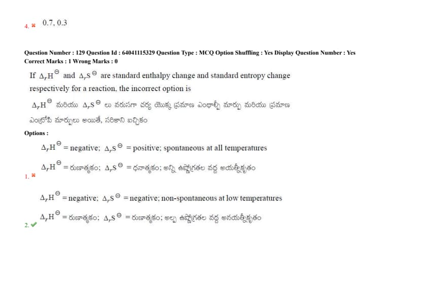 If \(\Delta_r H^{\ominus}\) and \(\Delta_r S^{\ominus}\) are standard enthalpy change and standard entropy change respectively for a reaction, the incorrect option is