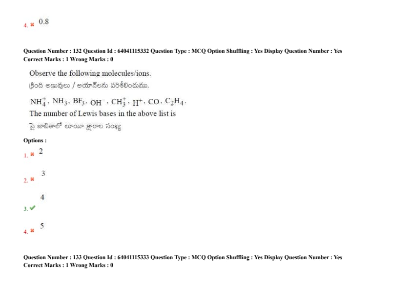 Observe the following molecules/ions. NH\(_4^+\), NH\(_3\), BF\(_3\), OH\(^-\), CH\(_3^-\), H\(^+\), CO, C\(_2\)H\(_4\). The number of Lewis bases in the above list is