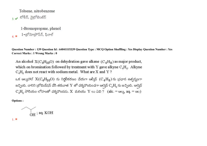 An alcohol X(C\(_4\)H\(_{10}\)O) on dehydration gave alkene (C\(_4\)H\(_8\)) as major product, which on bromination followed by treatment with Y gave alkyne C\(_4\)H\(_6\). Alkyne C\(_4\)H\(_6\) does not react with sodium metal. What are X and Y?