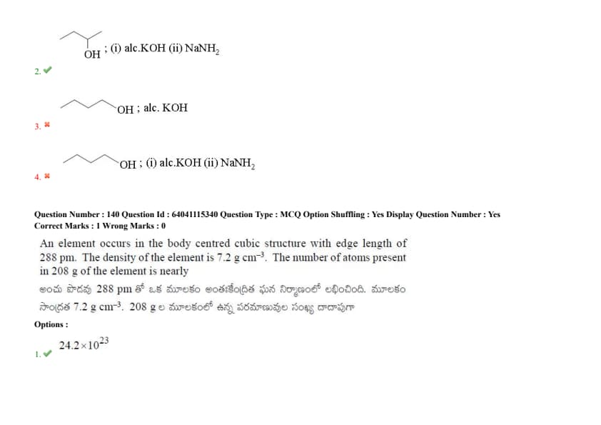 An element occurs in the body-centred cubic structure with an edge length of 288 pm. The density of the element is 7.2 g cm\(^{-3}\). The number of atoms present in 208 g of the element is nearly