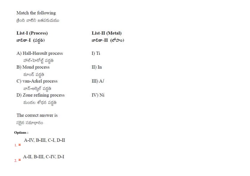 List-II (Metal)