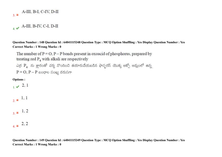 The number of P=O and P-O-P bonds present in the oxoacid of phosphorus, prepared by treating red P\(_4\) with alkali, are respectively