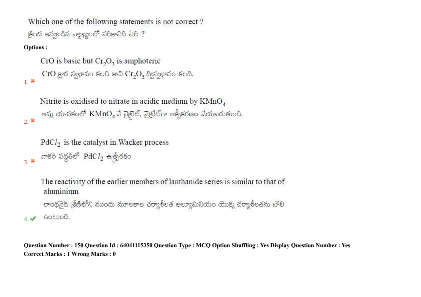 Which one of the following statements is not correct?