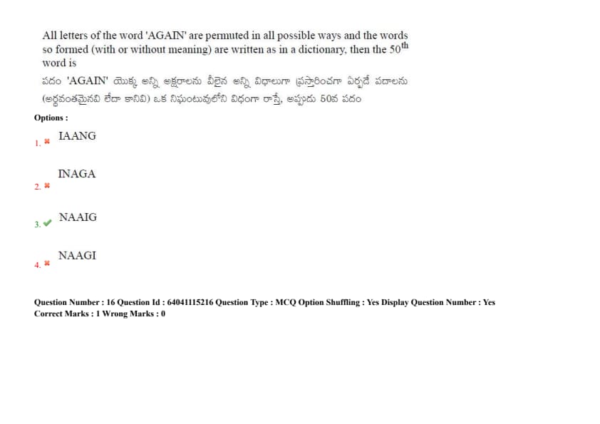 All letters of the word `AGAIN' are permuted in all possible ways, and the words so formed (with or without meaning) are written as in a dictionary. Then the \(50^{th}\) word is