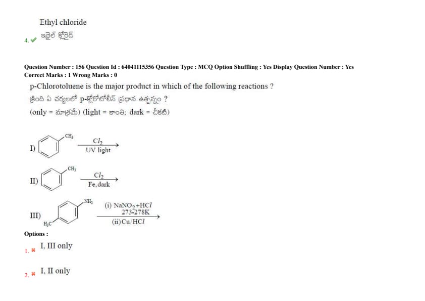 p-Chlorotoluene is the major product in which of the following reactions?