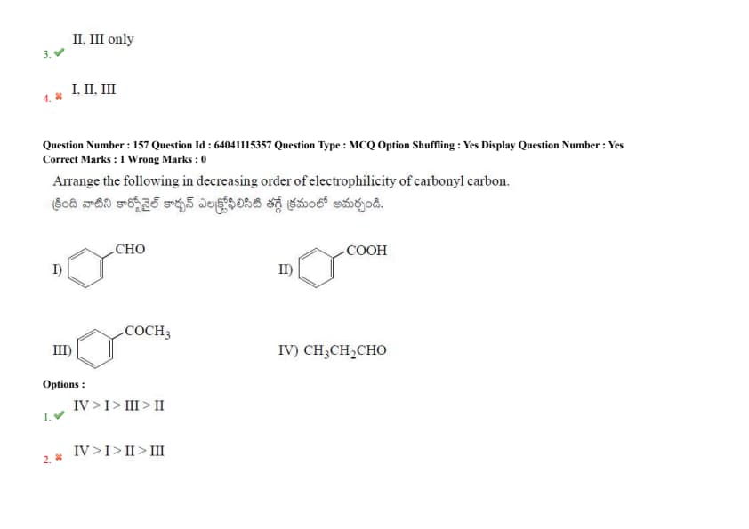 Arrange the following in decreasing order of electrophilicity of carbonyl carbon.