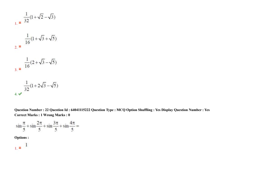 \(\sin\left(\frac{\pi}{5}\right) + \sin\left(\frac{2\pi}{5}\right) + \sin\left(\frac{3\pi}{5}\right) + \sin\left(\frac{4\pi}{5}\right) =\)