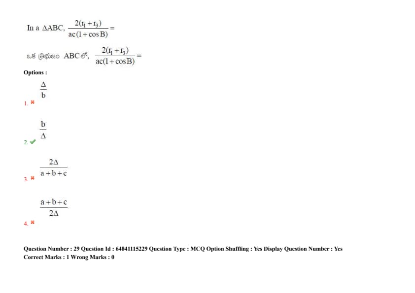 In a \(\triangle ABC\), \(\frac{2(r_1 + r_3)}{a c (1 + \cos B)} =\)