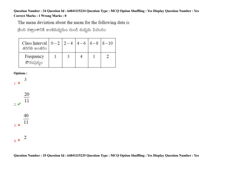 The mean deviation about the mean for the following data is