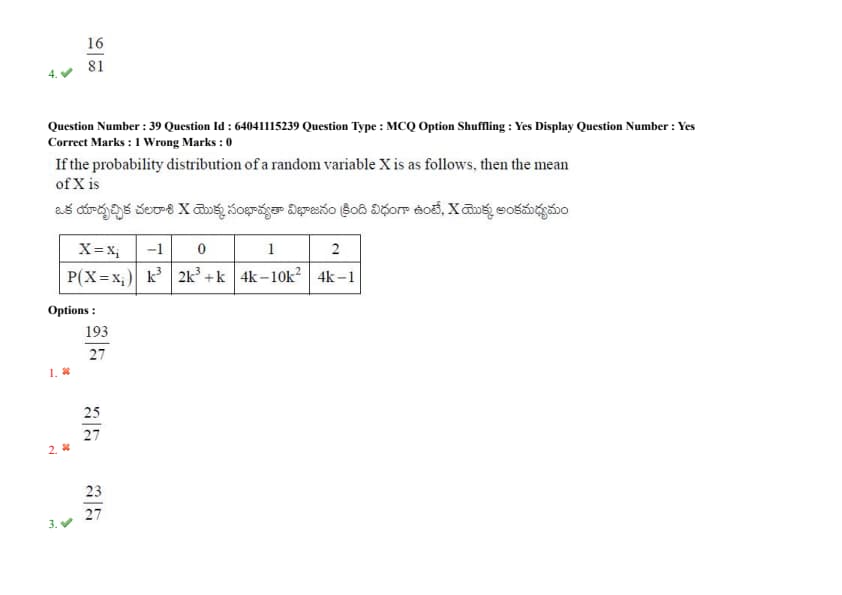 | P(X = xi) | k3 | 2k3 + k | 4k - 10k2 | 4k - 1 |