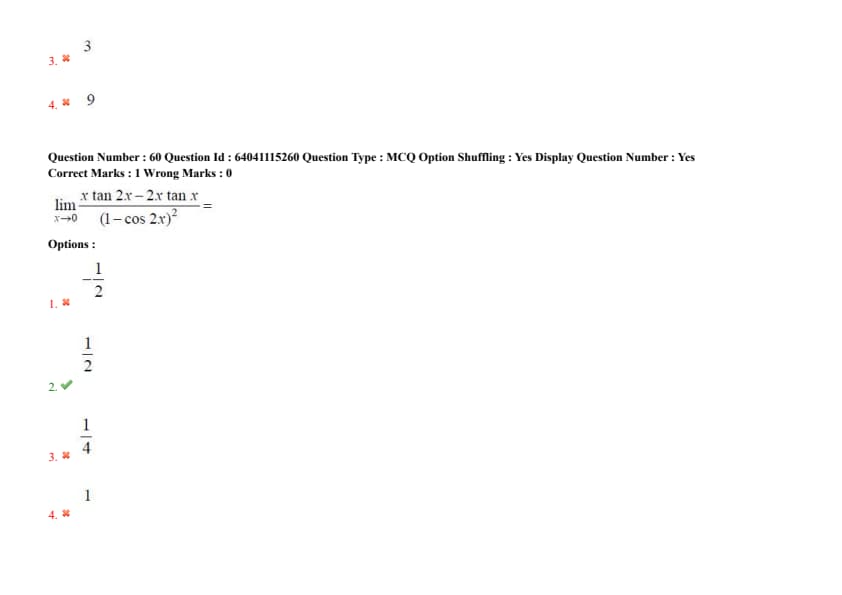 \(\lim_{x \to 0} \frac{x \tan 2x - 2x \tan x}{(1 - \cos 2x)^2} =\)