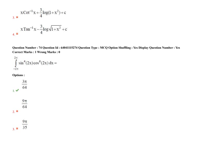 \(\int_{-2\pi}^{2\pi} \sin^2(2x) \cos^4(2x) \, dx =\)