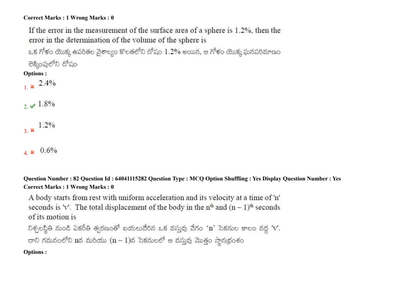 If the error in the measurement of the surface area of a sphere is 1.2%, then the error in the determination of the volume of the sphere is