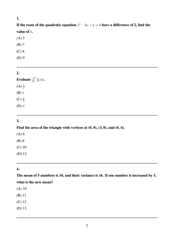 | Question Type | Conceptual and application-based |