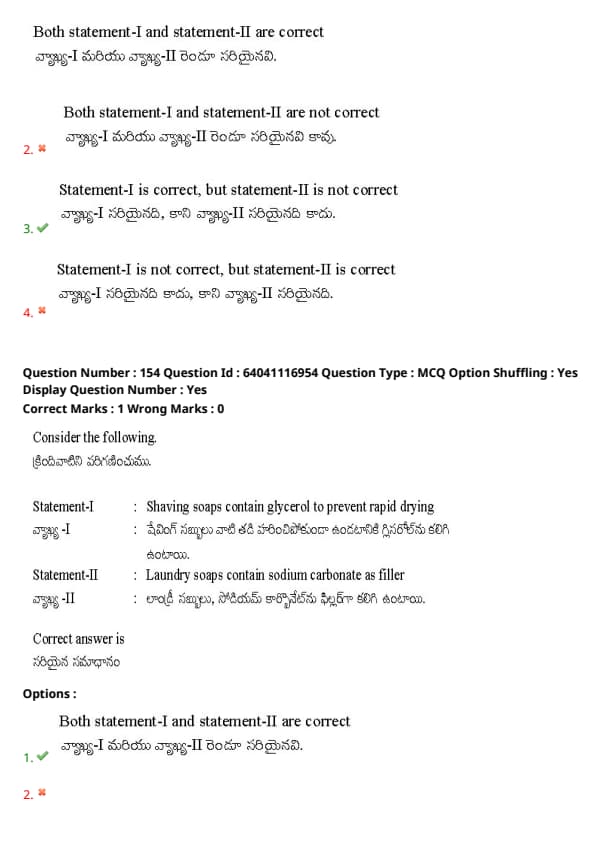 Statement-II: Laundry soaps contain sodium carbonate as filler.