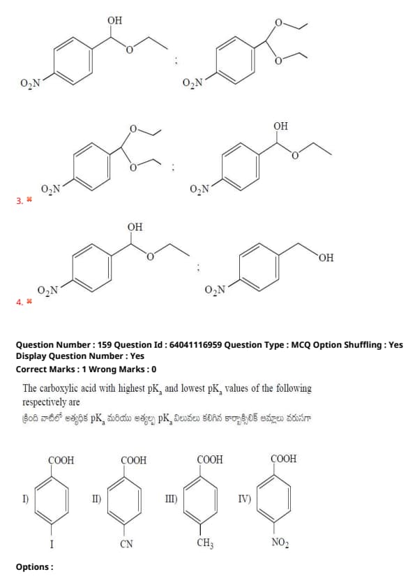 The carboxylic acid with highest \(pK_a\) and lowest \(pK_a\) values of the following respectively are: