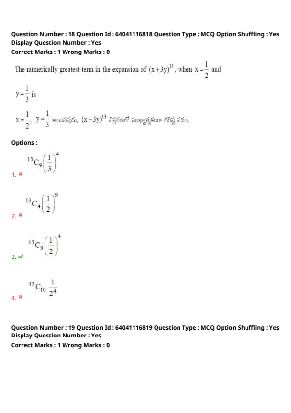 The numerically greatest term in the expansion of \( (x + 3y)^{13} \), when \( x = \frac{1}{2},\ y = \frac{1}{3} \), is