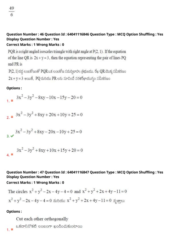 | AP EAPCET 2025 May 26 Shift 1 Question Paper with Answer Key | Download PDF | Check Solution |