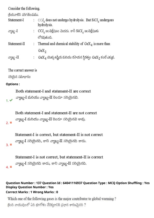 Statement II: Thermal and chemical stability of GeX4 is more than GeX2.