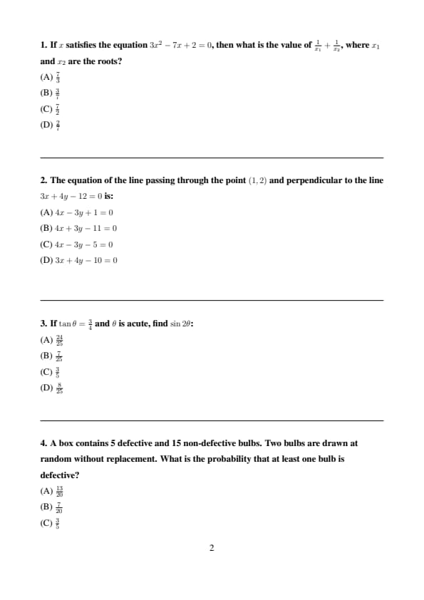 | Mathematics | Moderate to Tough | Major focus on Algebra & Calculus |