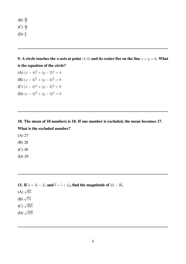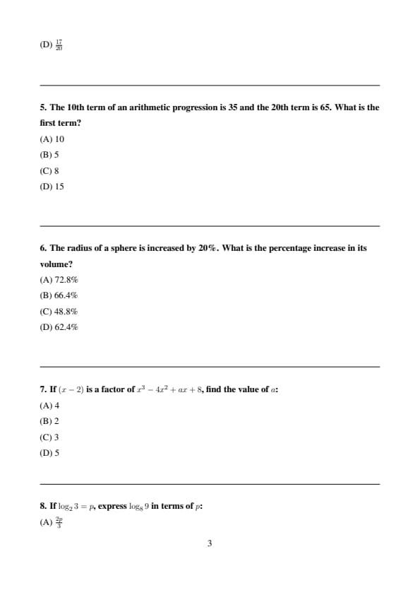| Mathematics | Moderate to Tough | Long calculations, topics from Algebra |