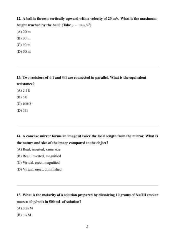 | Physics | Moderate | Balanced paper with units & measurements included |