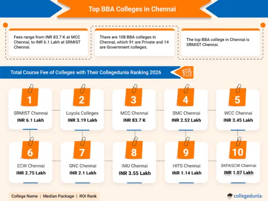 - Private BBA Colleges in Chennai: SRMIST Chennai, Loyola College Chennai, Madras Christian College Chennai.