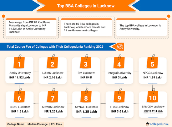 - Private BBA Colleges in Lucknow: Amity University Lucknow, Rama Mahavidyalaya Lucknow, Integral University Lucknow.