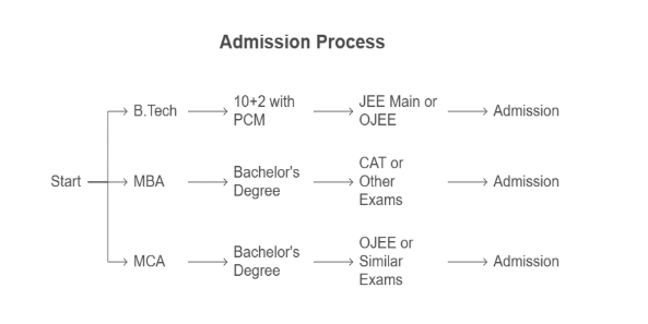 | Selection Criteria | Merit-Based and Entrance Exam-Based (JEE Main, OJEE for B.Tech; CAT, CMAT for MBA) |