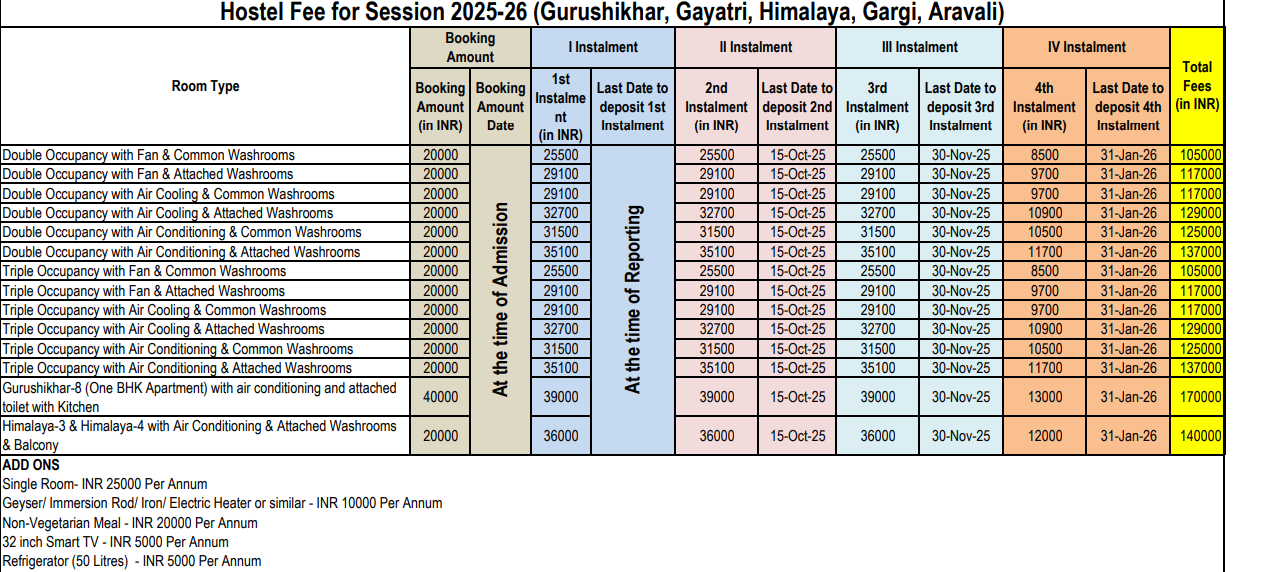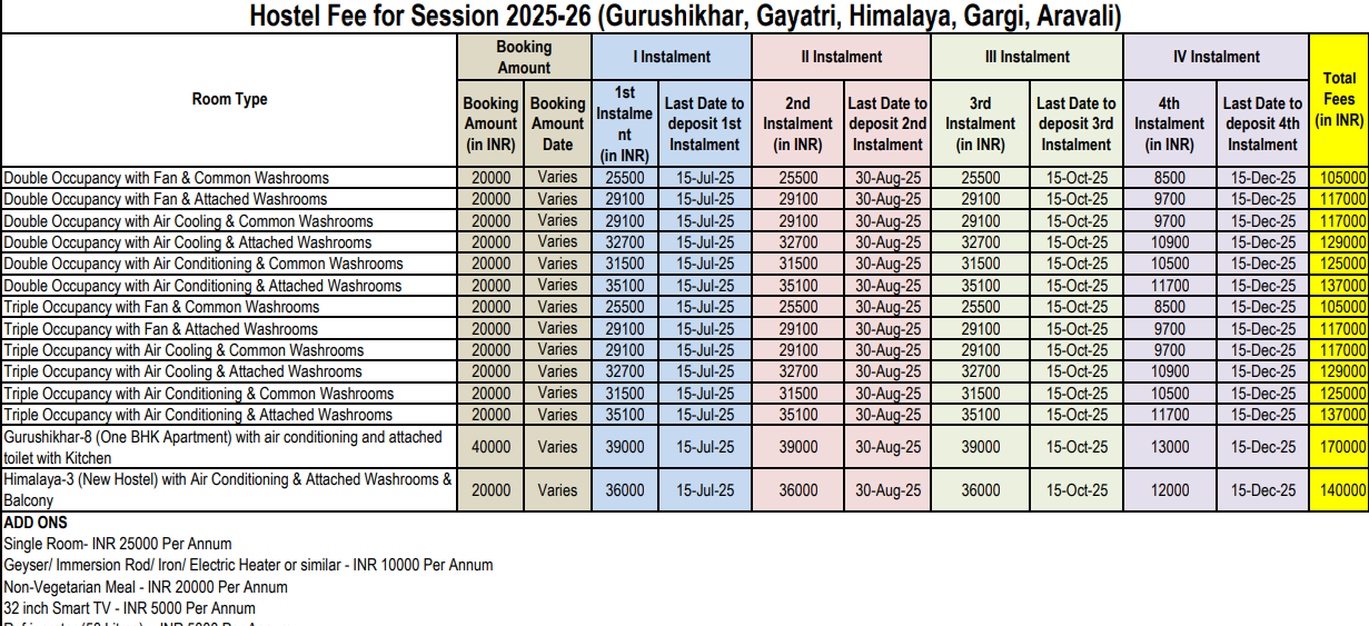 Hostel Fees for First Year :