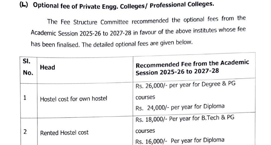 The college provides separate hostel facilities for boys and girls, with one 4-floor boys' hostel and four girls' hostels, one of which is within the campus for safety. Rooms are shared by up to four students. Boys' hostel lacks WiFi, whereas girls' hostel offers this amenity. The annual hostel fees are Rs. 22,000 for non-AC and Rs. 33,000 for AC rooms. Facilities include regular cleaning, laundry machines, aquaguards, and washing machines.