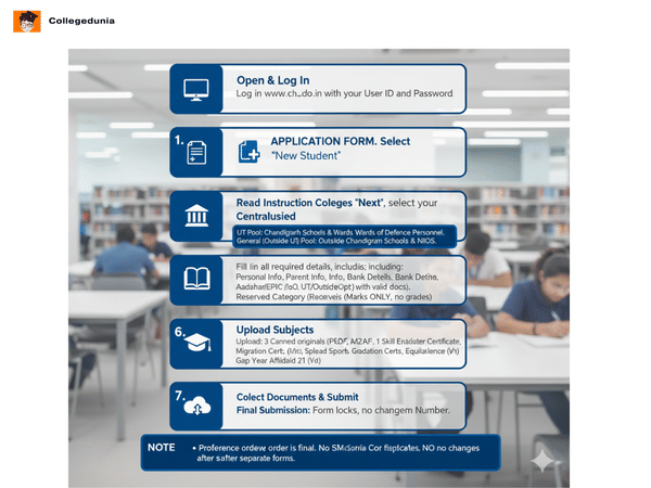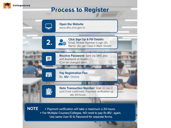 1. Open the Website www.dhe.chd.gov.in.Register on the website and then fill in the Applicant's details as in the Class-X mark sheet with Mobile Number of the Applicant will become his/her Login ID.