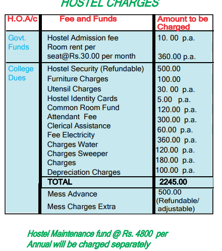 The college provides hostel accommodations primarily for girls with two major hostels, one for girls within the campus offering good security through guards and electronic surveillance, and one for boys located further from the college. Room sharing is common, often with 3-6 students per room. The infrastructure varies, with some reporting clean, well-maintained rooms and others noting poor maintenance, inadequate electricity, and lack of study tables.