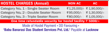 The college provides hostel facilities for over 2000 boys and 1000 girls on a twin/triple sharing basis. Rooms are equipped with basic amenities such as fans, beds, chairs, tables, and cupboards, with options for AC and non-AC rooms. The annual hostel fees range from Rs 65,000 to Rs 100,000, with outside accommodation being more affordable, approximately Rs 60,000 to Rs 70,000 per annum. The hostel offers a recreation room with a TV and indoor games, along with space for outdoor games like badminton.
