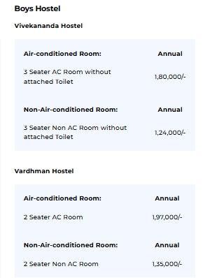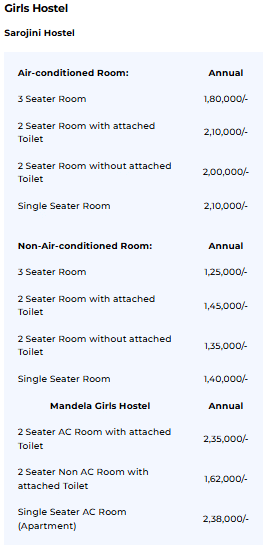 Hostel Security (Refundable): Rs. 10,000/- for Non-AC & 20,000/- for AC Room